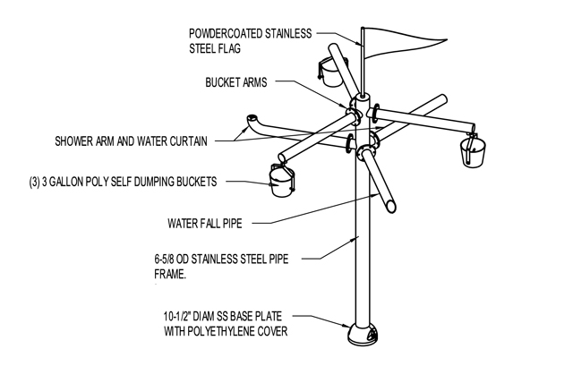 Model 1800-45-1: 30 gallon dump bucket with pipe waterfalls (shown)
