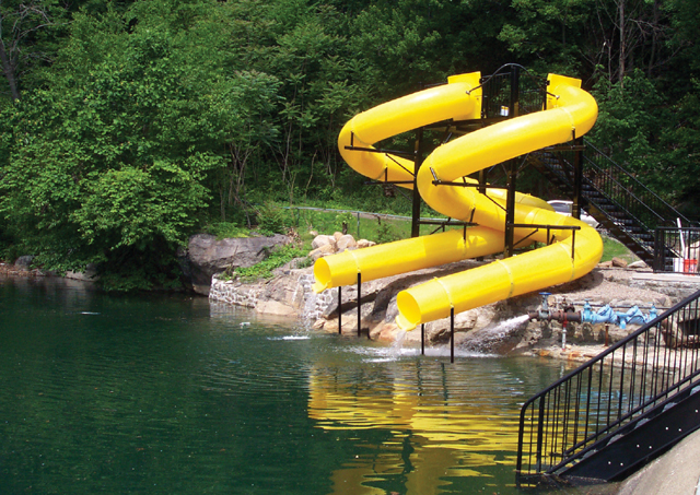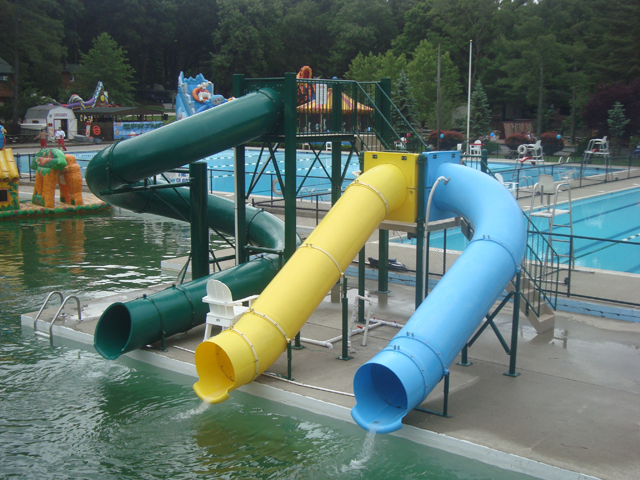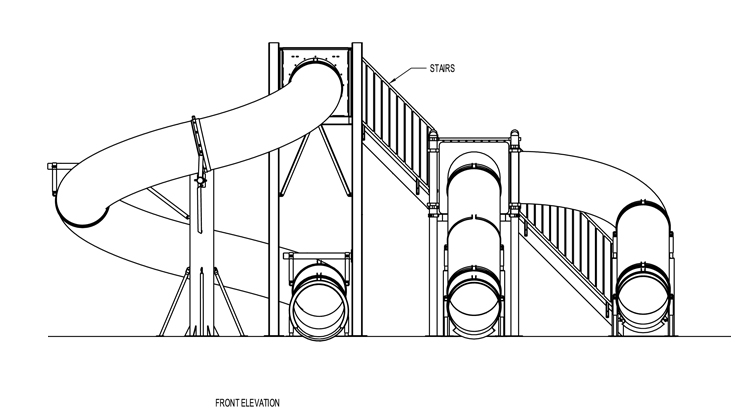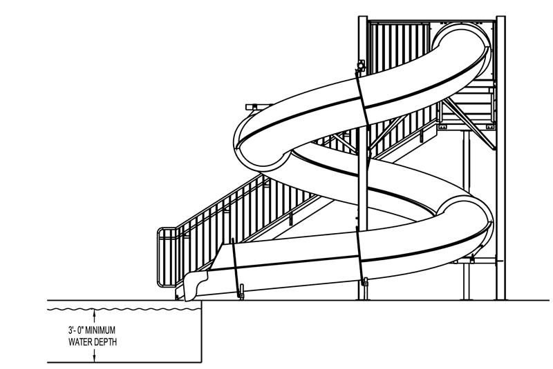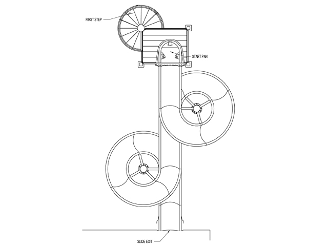 Description : Triple flume 30” I.D. polyethylene water slide, (1) 360°, (1) 180° and (1) 90° curves.