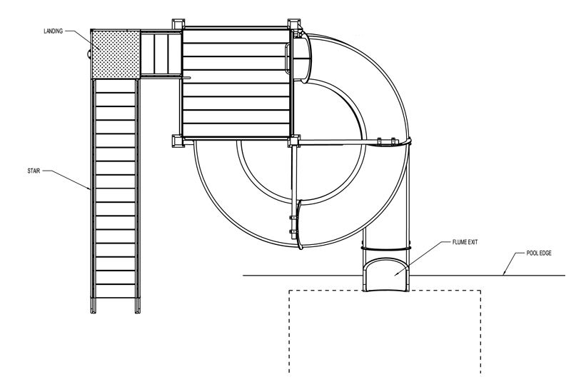 Description : Single 30" I.D. flume water slide with one 360° turn.