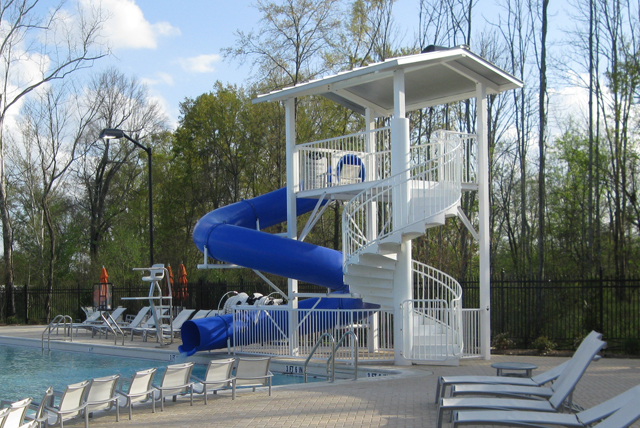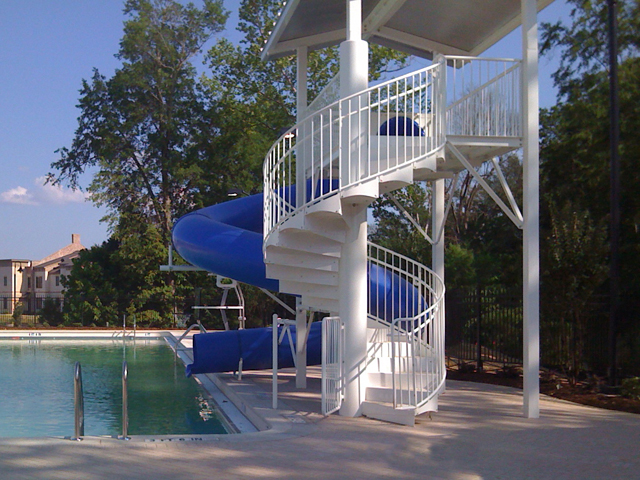 Description : Single, open flume fiberglass slide with 1½ spiral turns.