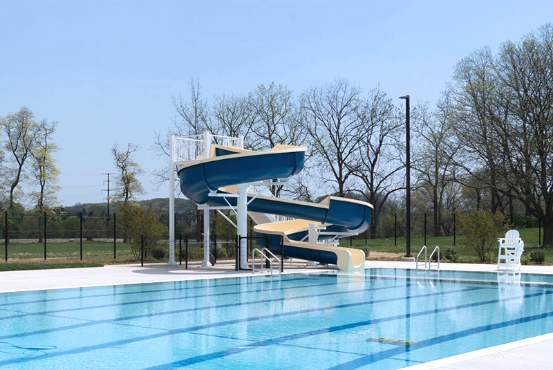 Description: 32” I.D. closed fiberglass flume water slide featuring 360° curves.